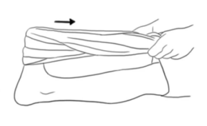 Sente-se com as pernas esticadas. Coloque uma toalha enrolada sob a bola de um pé e puxe suavemente a toalha em sua direção, alongando a panturrilha. Mantenha por 15-30 segundos e repita para a outra perna.